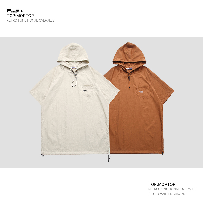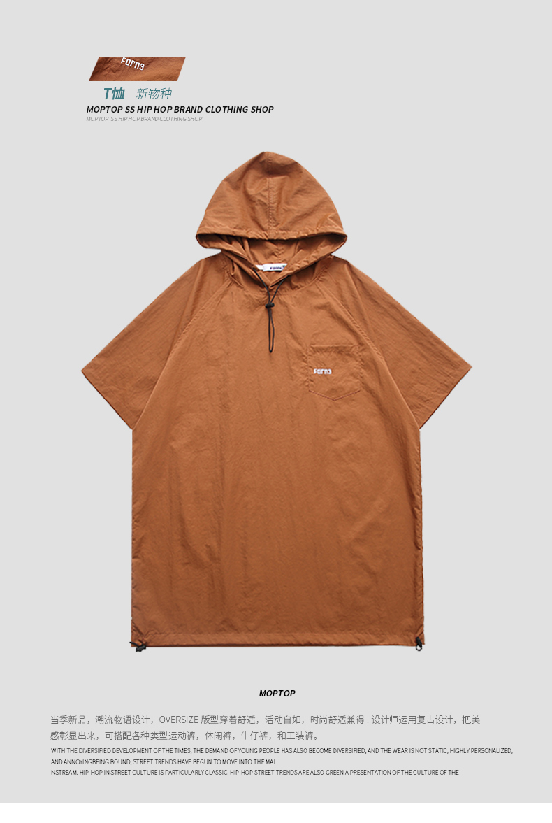 Mmoptop夏季2022新款連帽短袖T恤男士國(guó)潮ins情侶休閑打底衫男裝