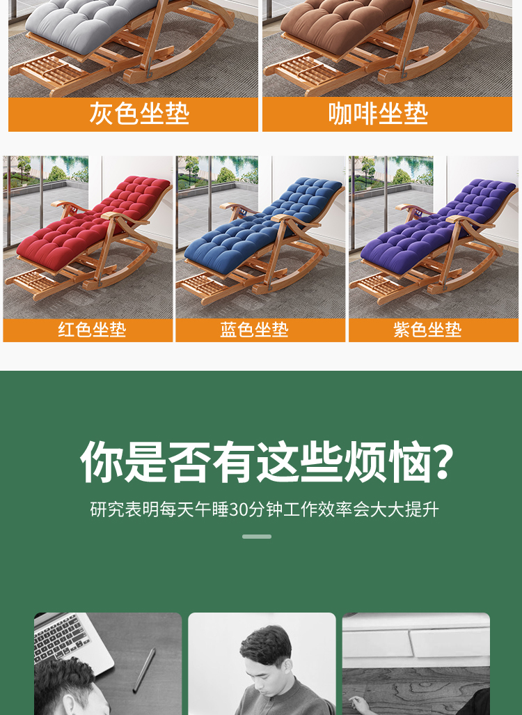 躺椅午休折疊椅子陽臺家用休閑沙灘椅成人老人大人辦公室竹搖搖椅