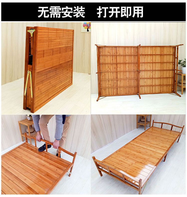 折疊床單人雙人簡易租房床午睡實木板成人家用1.2米1.5竹子床老式